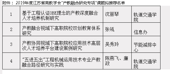 2019年江苏省高教学会“产教融合研究专项”课题