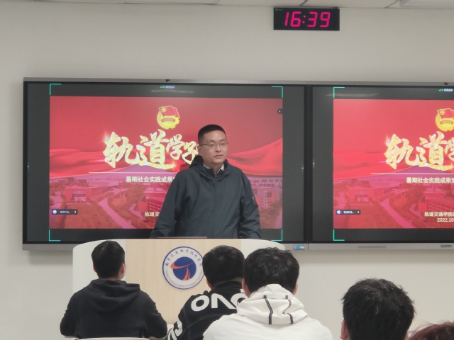 周昊明老师作点评发言,他认为本次暑期社会实践活动意义非凡并提出三点希望:一是希望同学们尽早确立目标,学好专业知识;二是希望同学们积极投身社会实践、参与志愿服务;第三、希望团支书能够切实发挥引领作用,带领更多的同学在学院搭建起的“轨道学子说”、“交院学子走大运”等实践平台锻炼能力、锤炼品格、展示风采。