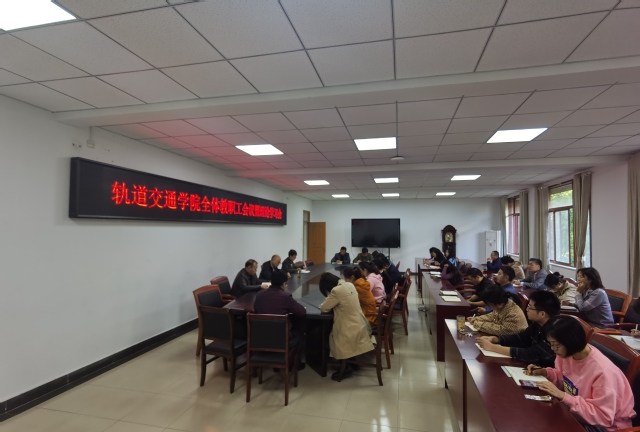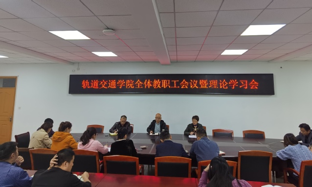 10月13日下午,轨道交通学院在明志楼308会议室召开全体教职工会议暨全体教师理论学习会,学院领导和全体教职工参加了会议。会议由轨道交通学院学院党总支书记滕兆霞主持。