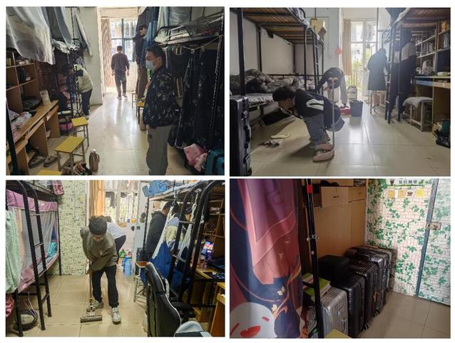 全体辅导员与班主任向学生宣传《学院学生公寓管理办法》《学院学生宿舍“三级建家”管理办法》等有关规定,并检查宿舍是否存在安全隐患。老师们协同学生共同清理宿舍卫生,整理内务,开窗通风,加强对宿舍各种物品、墙体地面的消毒。