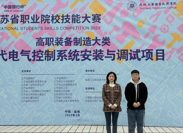3月15-17日,省职业院校技能大赛(高职组)“现代电气系统安装与调试”赛项在盐城工业职业技术学院举行。该赛项分教师组和学生组,我院何叶、刘康两位老师组成的教师代表队,从全省20支参赛队中脱颖而出,喜获二等奖(第一名);张晨、陈之阳两位同学(指导教师何叶、王均山)组成的学生代表队,与全省46支参赛队同台竞技,获得三等奖。