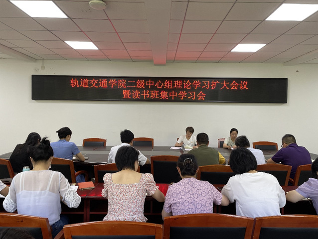 75日下午,轨道交通学院党总支在明志楼308会议室召开二级中心组扩大会暨读书班集中学习会。学院中心组全体成员、读书班全体成员参会。会议由党总支书记滕兆霞主持。