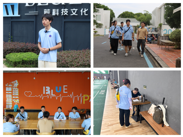 第一站,实践队员们来到了蓝科技文化创意产业园,这里原是常州皮革机械厂的旧址。当队员们进入蓝园后,首先映入眼帘的便是枝繁叶茂的树木,这里的植被覆盖率高达40%,是常州市内的天然小氧吧。跟随着园区负责人的步伐,队员们穿行在蓝园的各类体育、文艺活动馆中,了解这里是如何从“散乱污”走向“新时代的发展前沿”。蓝园以常州“工业记忆”为痕,搭建集文创科技、创意办公、休闲配套等为一体的城市“聚落空间”,从历史和时代的肌理中,保留城市变革高浓度记忆。如今的蓝园已经成为居民休闲娱乐的好去处,羽毛球馆、篮球馆、游泳馆里都充斥着人们的欢声笑语。