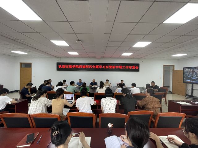 在第39个教师节来临之际,轨道交通学院组织全体教师观看了关于师德师风方面的视频,党总支滕兆霞书记传达了“教育部-师德师风建设工作推进暨师德集中学习教育启动部署会”精神和“省教育厅-全省高质量教育人才队伍建设暨师德师风工作推进会”精神。会议强调,要坚持把师德师风作为评价教师素质的第一标准,坚持师德师风违规“零容忍”,进一步加强师德师风建设。