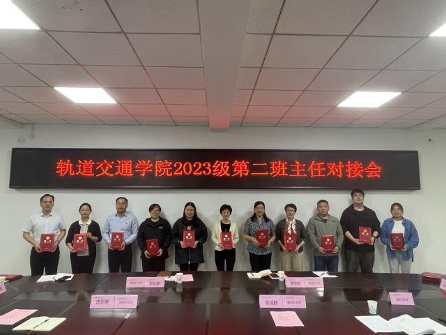 111日下午,轨道交通学院党总支在明志楼308会议室召开2023级第二班主任对接会。院领导贾俐俐、学院副院长谢剑康、2023级第一班主任和第二班主任、各班学生代表参加会议。会议由轨道交通学院党总支书记滕兆霞主持。