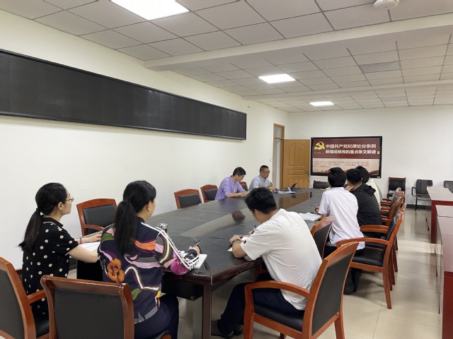 支部书记周昊明从《条例》修订的历史沿革讲起,围绕修订内容、修订意义以及相关警示案例等三方面,深入系统地讲解了新《条例》,重点阐述了党的六项纪律修订的主要内容,指出《条例》为党员的言行划出了红线,规定了底线,让党员“心有所畏,言有所戒,行有所止”。