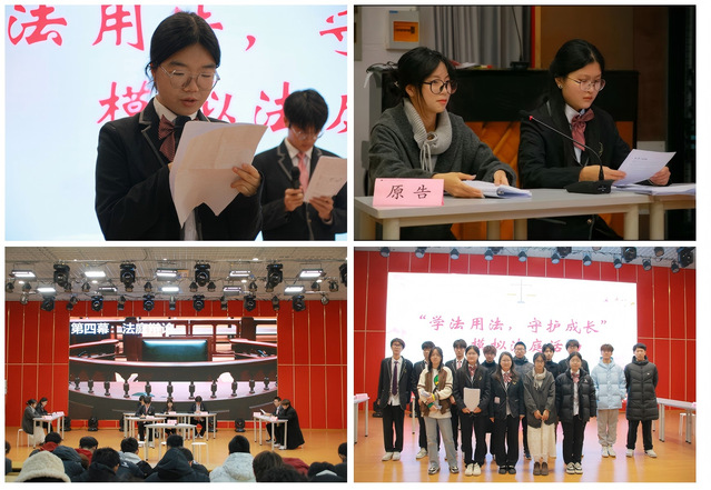 3.模拟法庭,践行法治理念。举办“弘扬法治精神,体验庭审魅力”模拟法庭活动,在活动中,学生们亲身扮演法官、检察官、律师等角色,模拟真实的法庭审判场景,切实体会司法公正的严谨与庄严。