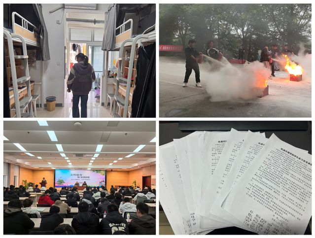 聚焦隐患排查,筑牢校园安全“防护墙”。学院领导、辅导员以及实训教师组成联合排查小组,对学院教学办公场所、学生公寓等重点部位进行安全督查,对发现的问题及时记录并制定整改措施,确保校园消防安全无死角。学院联合保卫处开展了消防安全专项活动,让学生掌握基本的消防器材使用方法,提高自防自救能力。组织全体宿舍长参加“勇担寝室责,共创和谐居”培训会,进一步提高宿舍长的综合能力,强化寝室管理水平,推动学院文明宿舍建设进程。组织毕业生签订《实习安全承诺书》,强化学生遵纪守法观念和安全防范意识。