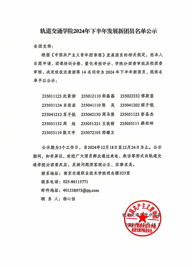 2024年下半年新发展团员名单公示