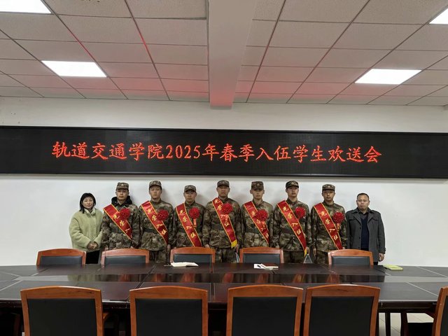 2025年,轨道交通学院兵员征集工作得到学校多部门支持,经过报名初审、进站体检、政治考核、役前教育等环节层层筛选,最终有7名毕业生通过考核光荣入伍。