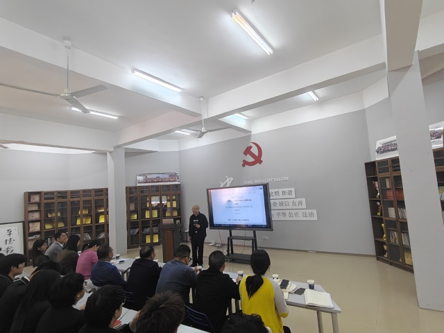 会上,二级理论学习中心组全体成员与“青马工程”培训班全体学员共同聆听了学院关工委常务副主任、老党员蔡彭骑老师“领悟二十大报告中的人才战略论述”的主题党课。