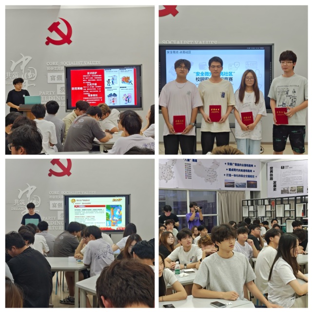 活动伊始,两位宣讲人为同学们普及安全知识,张宇飞聚焦安全生产,通过生动案例讲解实习或者实践生产中的安全隐患与防范措施,让同学们深刻认识到安全生产的重要性。随后,周涛围绕网络安全与人际交往安全展开宣讲,分享网络诈骗的常见手段及应对方法,提醒大家在网络世界保持警惕。