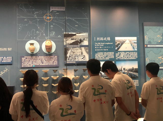 在1号厅:大运河中国的世界文化遗产。实践团成员通过现实文物、考古发现等渠道,找到了大运河在历代职官机构、漕运仓储、钞关邮驿与闸坝船政中贯通南北江河、连接海陆内外的历史证据,深刻理解了中华文明铸造中华民族多元一体的人文伦理,和中华文明开放包容的历史意义。