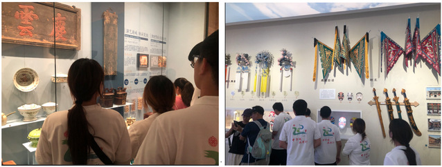 在7号厅:大运河非物质文化遗产。实践团成员们看到了各族人民戏曲文化、习俗文化和饮食文化的交融。大运河让各族人民的文化流动并融合,促进了中华文明的传承,凝聚了中华民族精神。