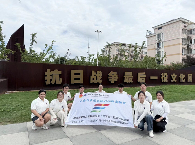 2025年7月9日,“三红走运河”暑期社会实践团队来到高邮明清运河故道与抗日战争最后一役文化园继续探寻民族团结的历史与红色印记。