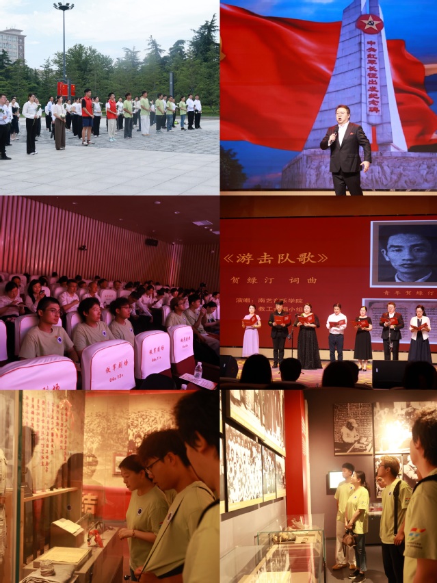 2025年7月7日,实践团队有幸参加了由中共盐城市委宣传部主办的名为胜利回响,铁军战歌---纪念全民族抗战爆发88周年活动。纪念馆广场上,实践团成员与各界代表肃立,高唱国歌。伴随着深情的《献花曲》,全体成员向抗战英烈敬献鲜花并鞠躬致敬,深切缅怀为民族独立与人民解放事业英勇献身的革命先烈。在铁军剧场内团队成员们参加了一场别开生面的音乐思政课,《游击队歌》《一件旗袍的追思》《白菜心》等节目,生动再现了新四军将士与全国军民同仇敌忾、浴血奋战的壮阔史诗。在“砥柱中流”主题展厅内,团队成员在指导老师的带领下驻足凝视珍贵的文物史料与历史图片,沉浸式感悟新四军将士与全国军民共御侮的壮烈史诗。