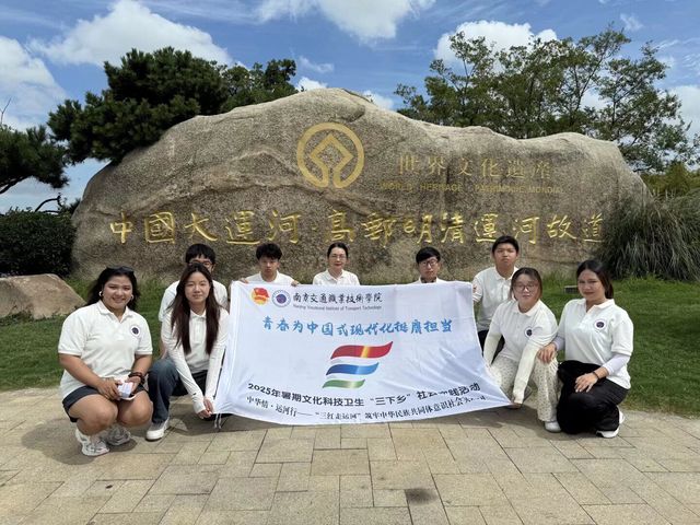 中华民族共同体意识是国家统一之基、民族团结之本、精神力量之魂。为深入学习贯彻党的二十大精神和习近平总书记关于铸牢中华民族共同体意识重要论述精神,切实以行动铸牢中华民族共同体意识。2025年暑期,南京交通职业技术学院轨道交通学院“中华情·运河行”实践团以大运河文化探索为主线,在社会大课堂中深刻领悟“民族团结是各族人民的生命线”的精神内涵,用实际行动践行新时代青年的责任与担当。