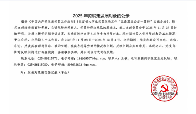 25年下半年拟确定发展对象公示