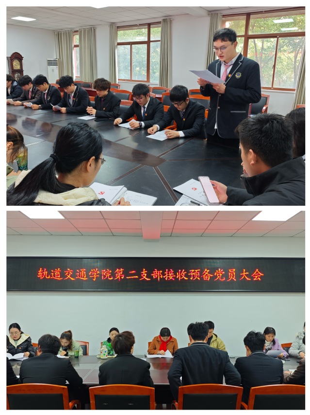 2025年12月30日,轨道交通学院第二党支部在明志楼308会议室召开预备党员接收及转正大会。